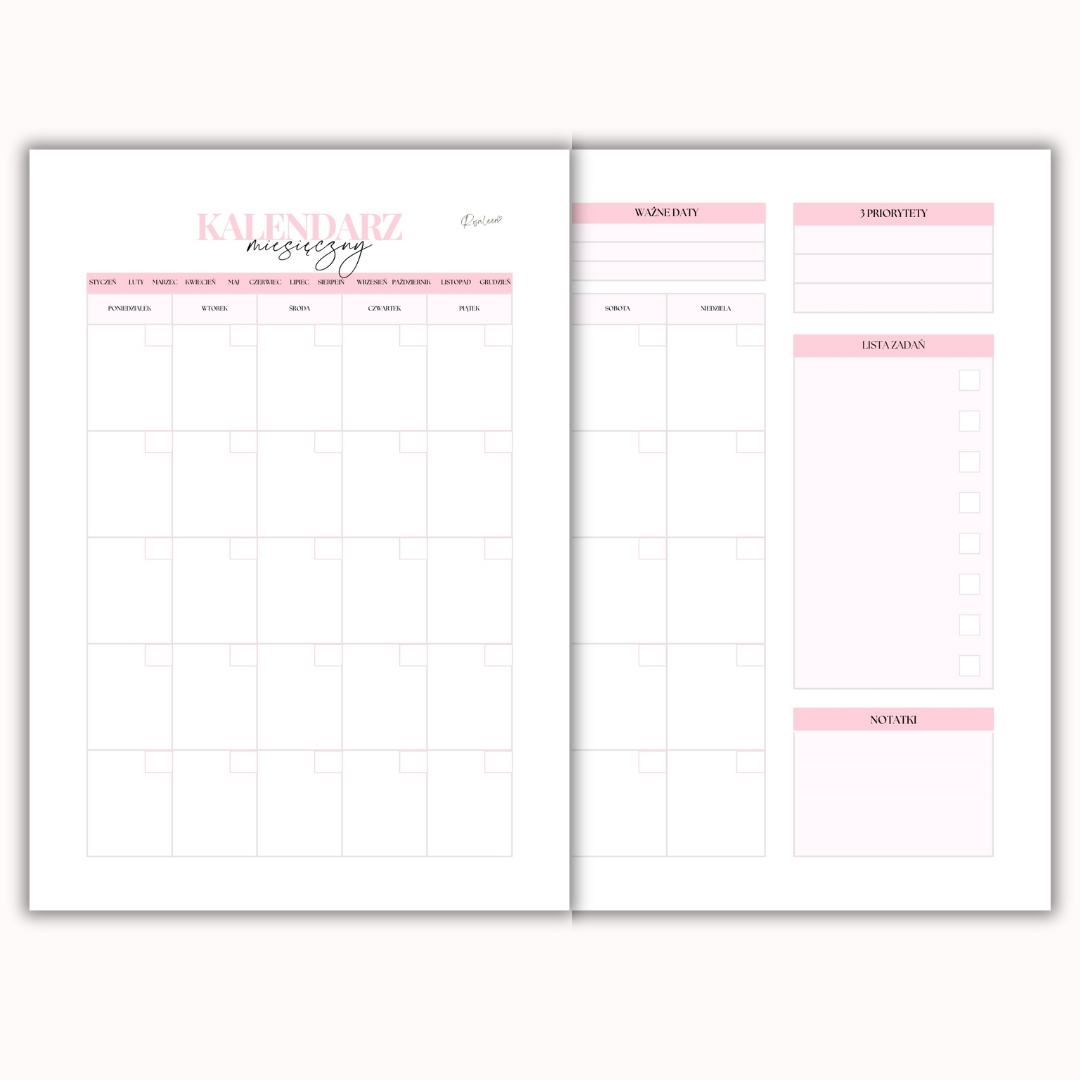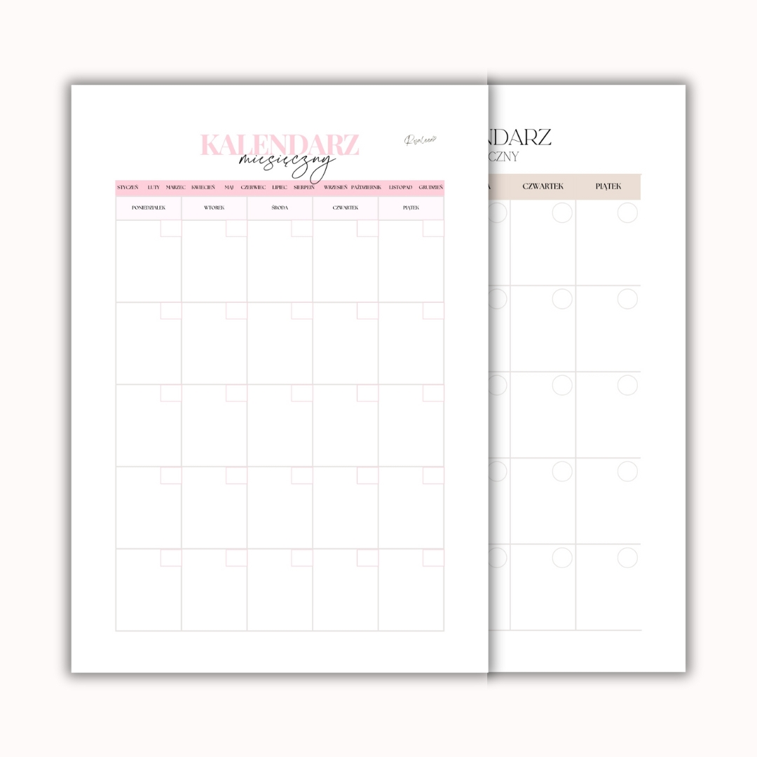 Zaplanuj każdy miesiąc dokładnie tak, jak chcesz! Niedatowany kalendarz miesięczny na cały rok pozwala Ci rozpocząć organizację w dowolnym momencie roku – bez presji, bez pośpiechu.
