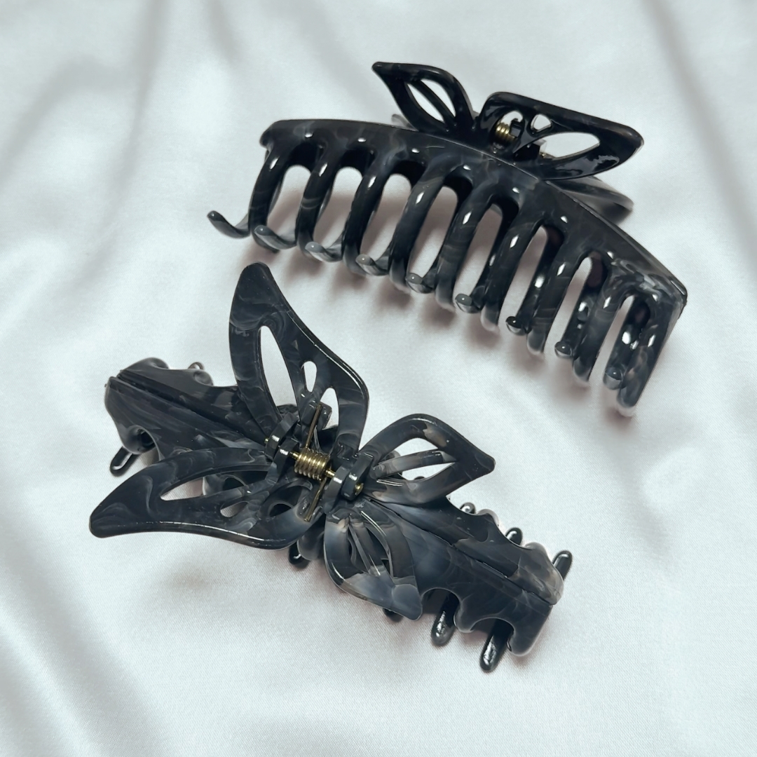 Klamra Dark Whisper z pozoru wygląda klasycznie, jednak skrywa wyjątkowy detal. Po upięciu włosów zachwycisz przepiękną ozdobą w kształcie motyla, który wygląda, jakby właśnie przysiadł na Twojej fryzurze.