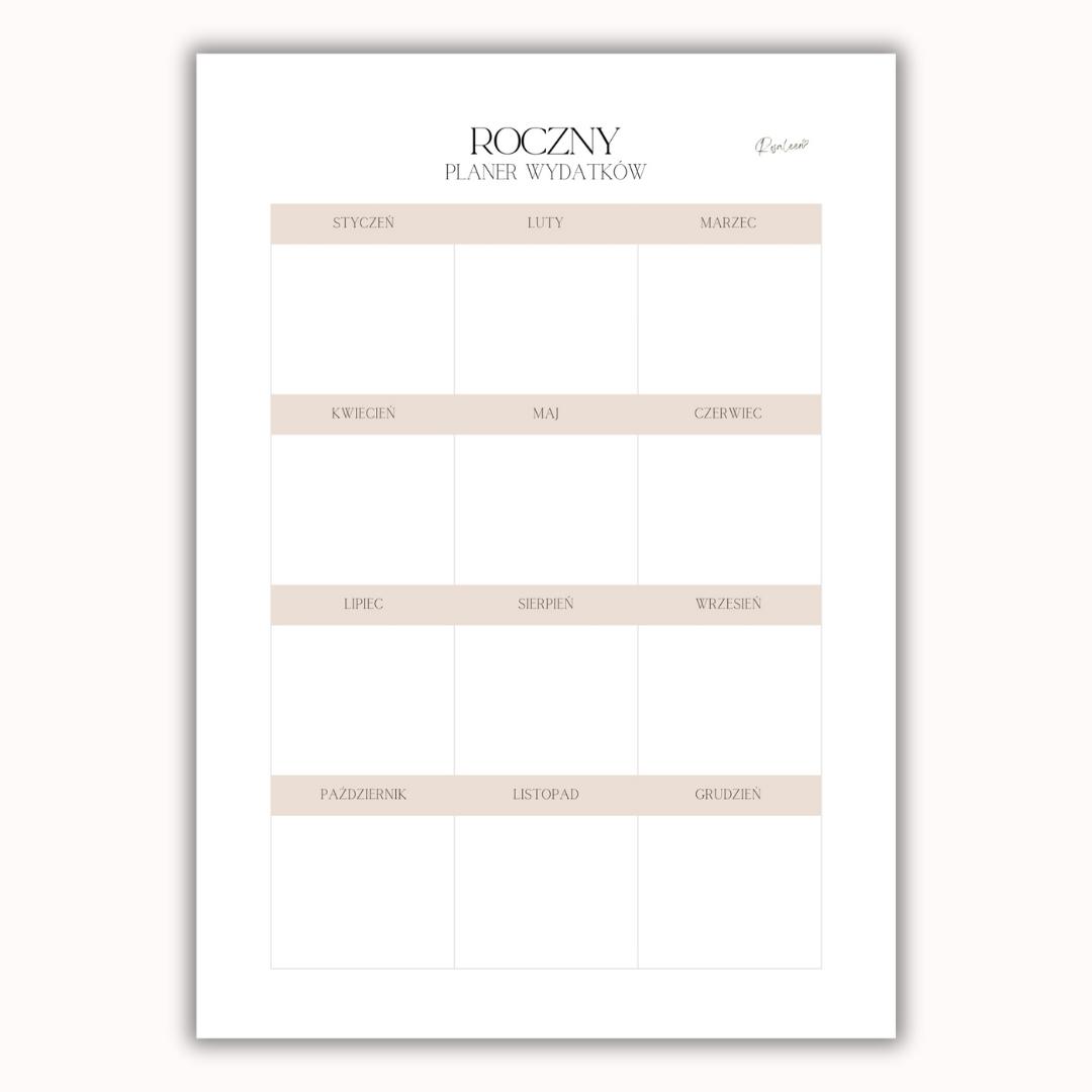 Roczny, niedatowany Planer Budżetu to narzędzie, które pomoże Ci świadomie planować finanse przez cały rok, monitorować swoje nawyki i dążyć do większej stabilności finansowej.