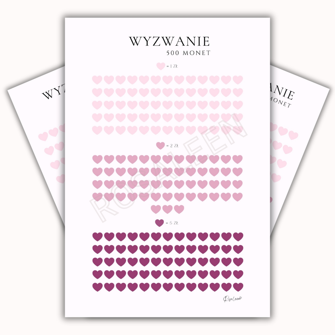 🖤W tym wyzwaniu możesz odłożyć 1 zł, 2 zł lub 5 zł. Wybierz odpowiedni nominał, odłóż do koperty, a następnie zamaluj odpowiednie serduszko!
