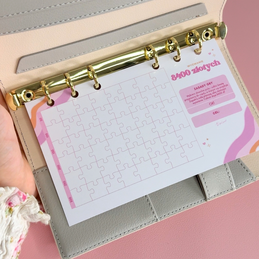 - Wyzwanie zawiera 6 dziurek. Idealne do wpięcia do organizera A6.