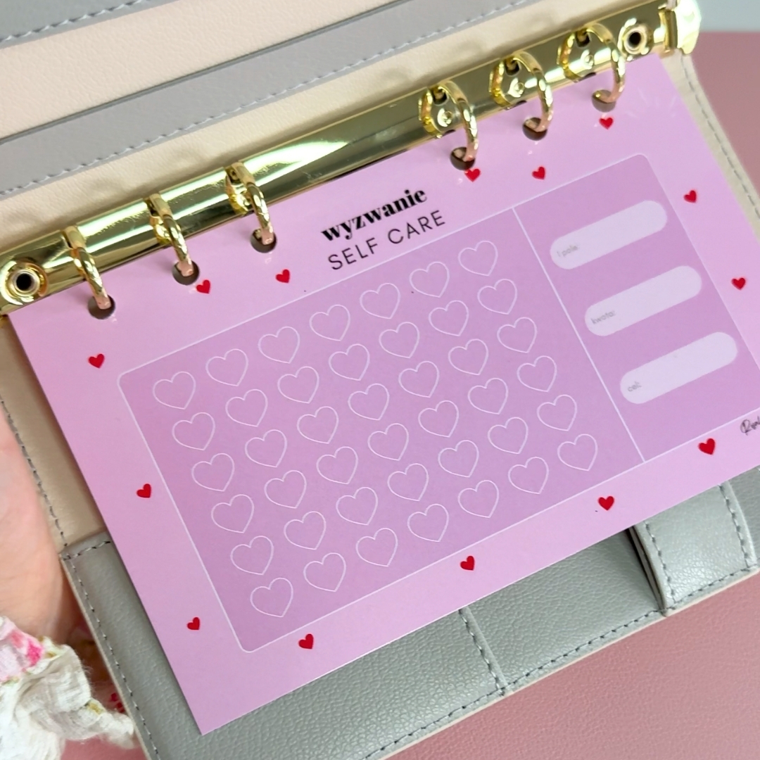 - Wyzwanie zawiera 6 dziurek. Idealne do wpięcia do organizera A6.