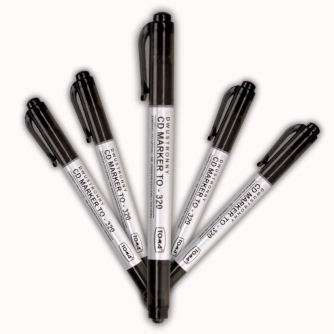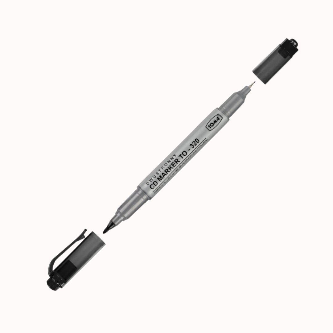 Czarny, dwustronny mazak permanentny marki Toma.