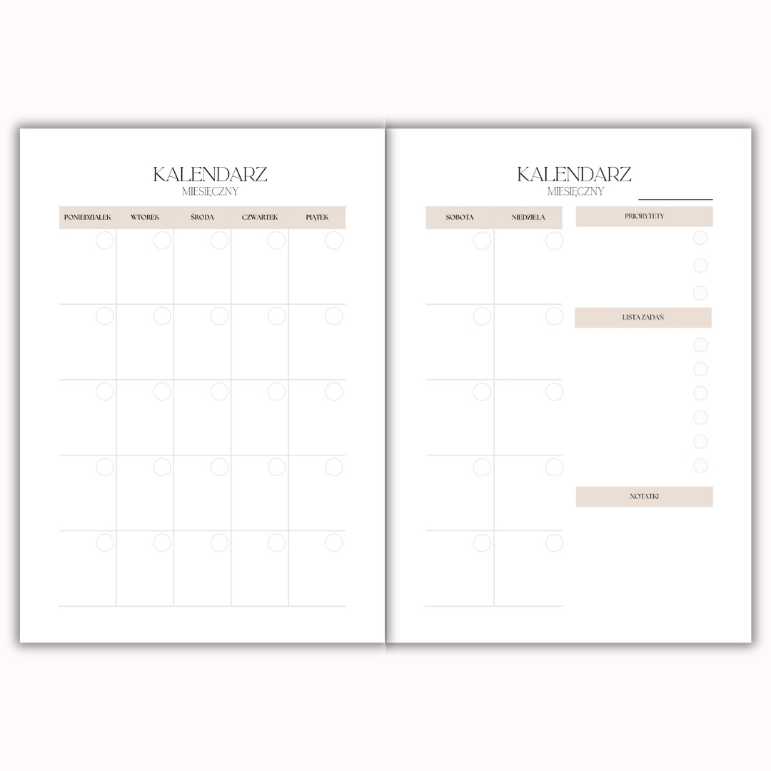 Zaplanuj każdy miesiąc dokładnie tak, jak chcesz! Niedatowany kalendarz miesięczny na cały rok pozwala Ci rozpocząć organizację w dowolnym momencie roku – bez presji, bez pośpiechu.