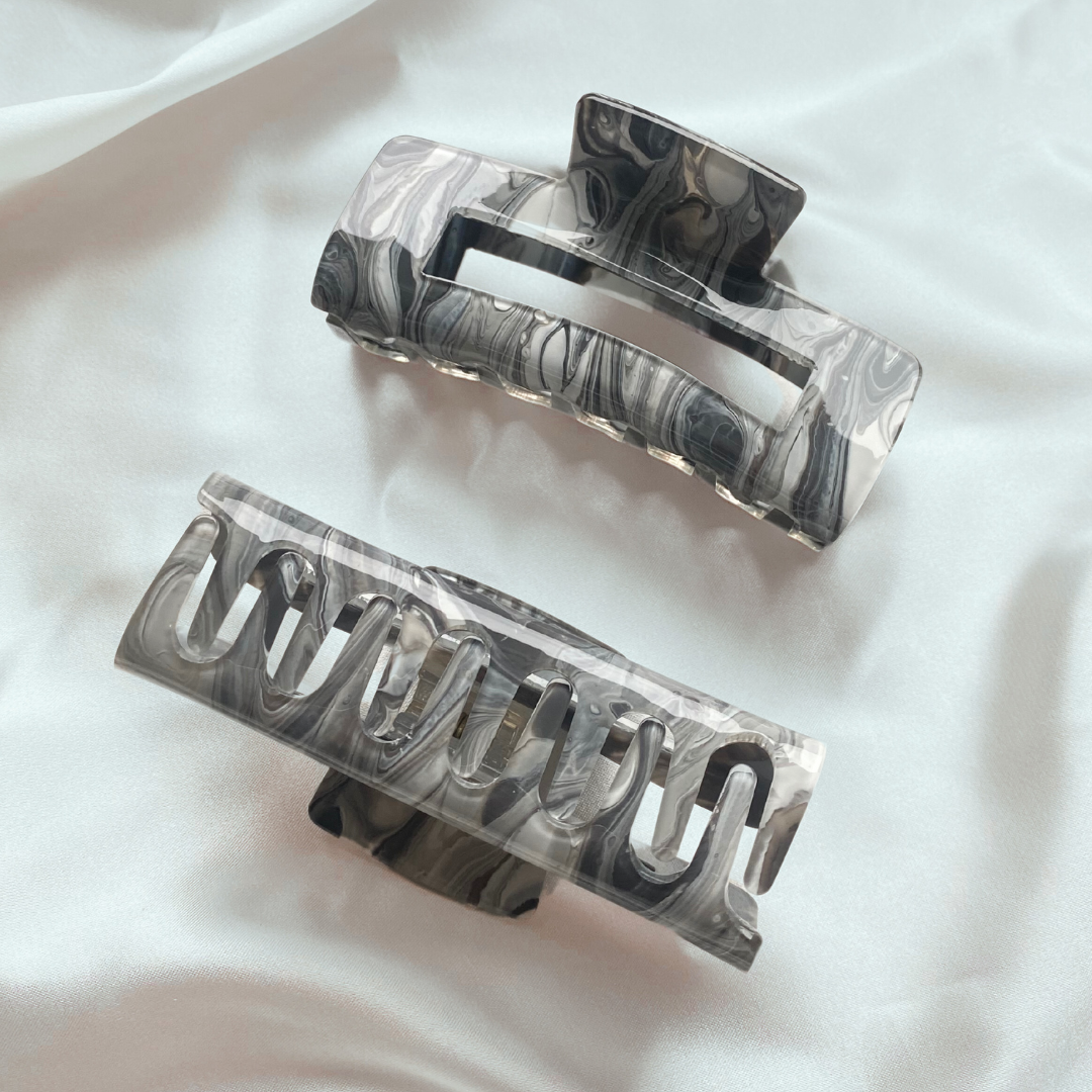 Klamra Black Marble zachwyca nie tylko pięknym kolorem, ale także efektem marmuru, który nadaje jej niepowtarzalny charakter. Wykonana z wysokiej jakości materiałów, nasza klamra do włosów jest nie tylko piękna, ale także trwała i solidna. Możesz być pewna, że utrzyma Twoje włosy w idealnym porządku przez cały dzień.