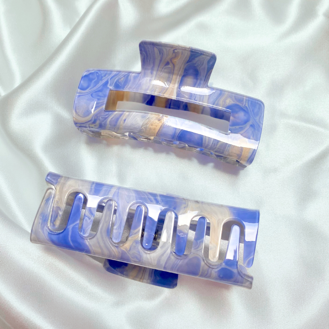 Klamra Periwinkle zachwyca nie tylko unikalnym połączeniem kolorów – fioletu wpadającego w odcień niebieskiego, ale także efektem marmuru, który nadaje jej niepowtarzalny charakter. Wykonana z wysokiej jakości materiałów, nasza klamra do włosów jest nie tylko piękna, ale także trwała i solidna. Możesz być pewna, że utrzyma Twoje włosy w idealnym porządku przez cały dzień.