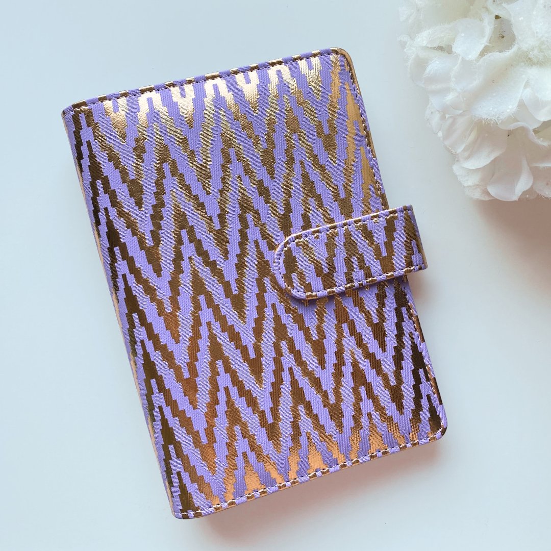 Uporządkuj swój budżet w stylowy sposób dzięki liliowemu segregatorowi A6 ze złotym motywem!