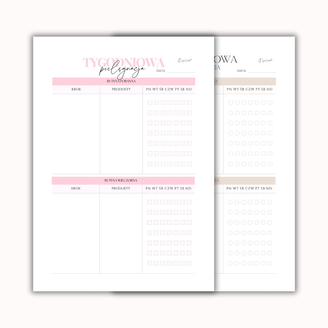 Tygodniowa Pielęgnacja Self-care to idealne narzędzie, które pomoże Ci stworzyć spójną, świadomą rutynę dostosowaną do Twoich potrzeb.