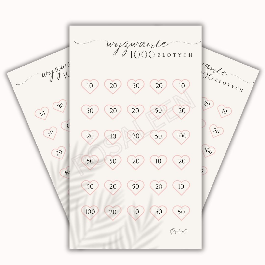 Karta 1000 zł to serduszka z kwotami od 10 do 100 zł, a każde zamalowane pole to krok bliżej do osiągnięcia 1000 zł! Obserwuj, jak z każdym zamalowanym serduszkiem zbliżasz się do spełnienia swoich marzeń.
