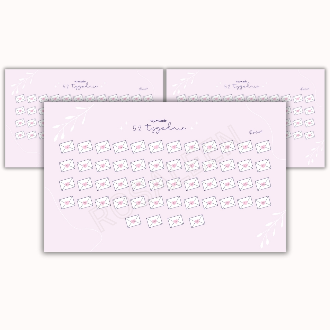 🖤Przed Tobą 52 pola. Co tydzień przez rok odkładaj ustaloną kwotę do koperty i zamaluj jedną kopertę.