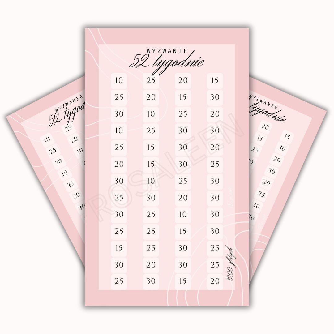 🖤Wyzwanie trwa okrągły rok, a oszczędności odkładasz co tydzień! Każdy kwadrat to nowy tydzień.