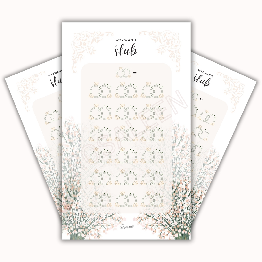 Ustal wartość jednej pary obrączek według swoich możliwości finansowych i za każdym razem, gdy odłożysz ustaloną sumę, zamaluj parę obrączek na karcie.