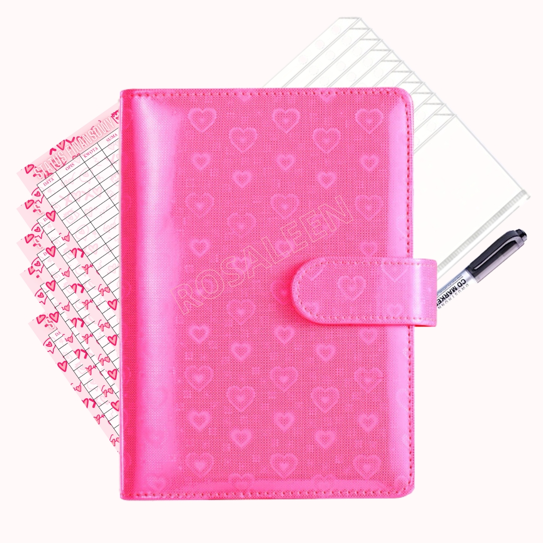- Eleganckim, różowym segregatorze budżetowym: Stylowy, piękny binder pomoże Ci utrzymać wszystkie elementy zestawu w jednym, uporządkowanym miejscu.
