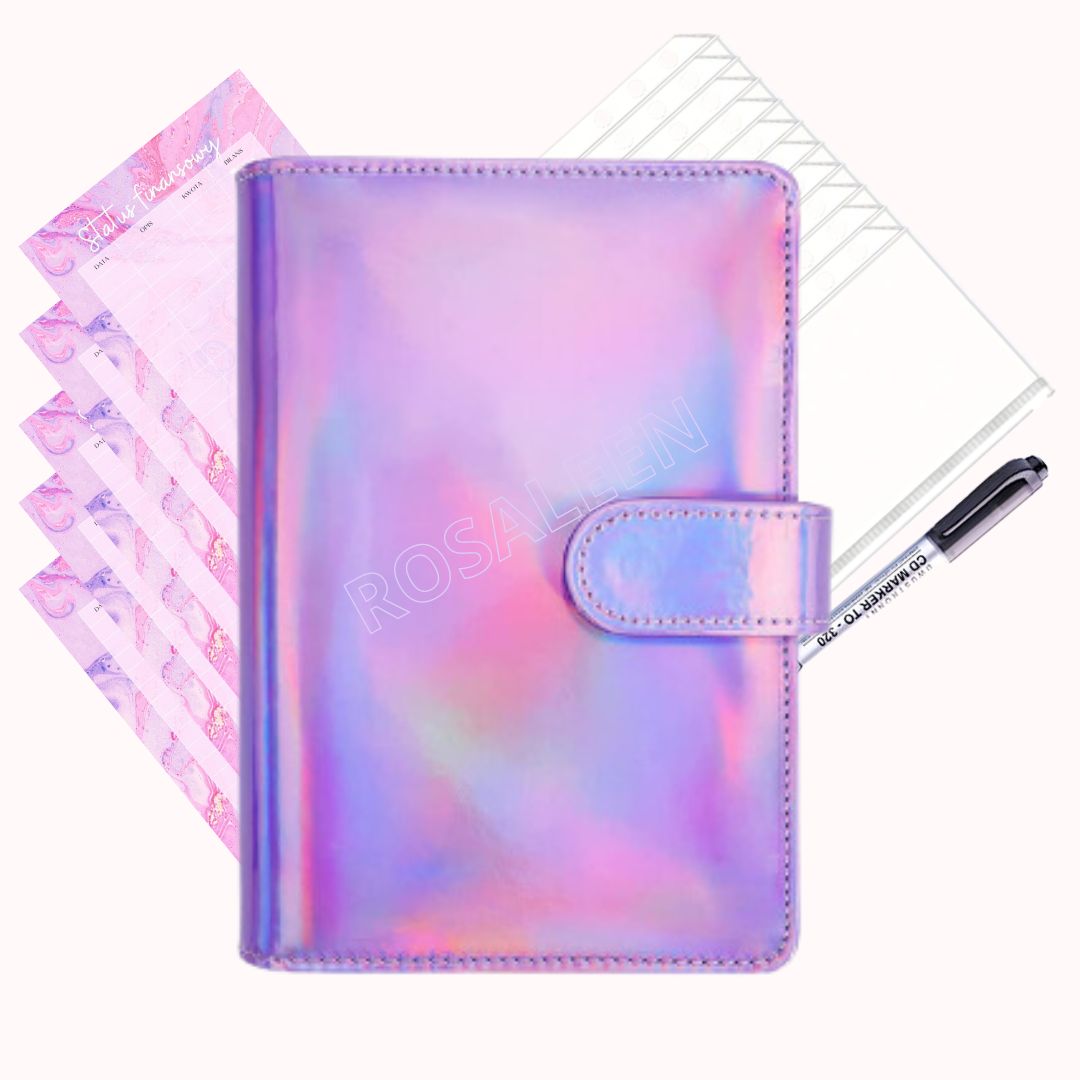 Zestaw Purple Mirror do oszczędzania metodą kopertową. Przeznaczony dla osób pragnących zapanować nad wydatkami i oszczędnościami oraz dla tych, którzy chcą w pełni kontrolować swoje finanse.